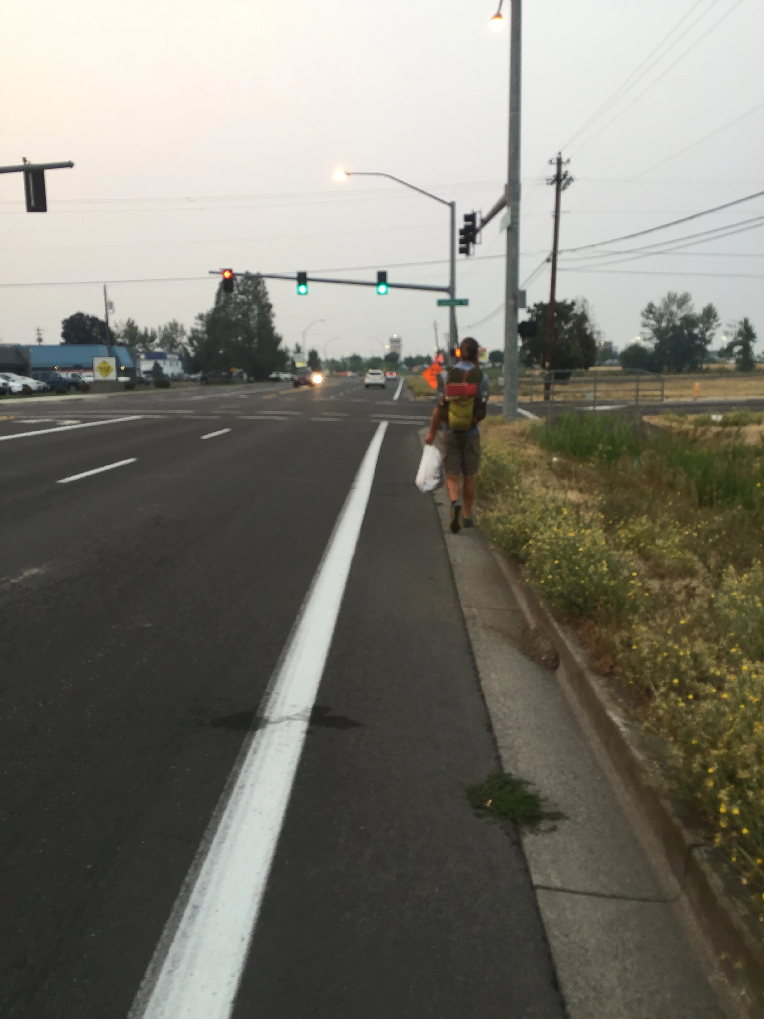 After eating, Cosmo and I caught a bus to Medford and hiked along the highway towards the airport.