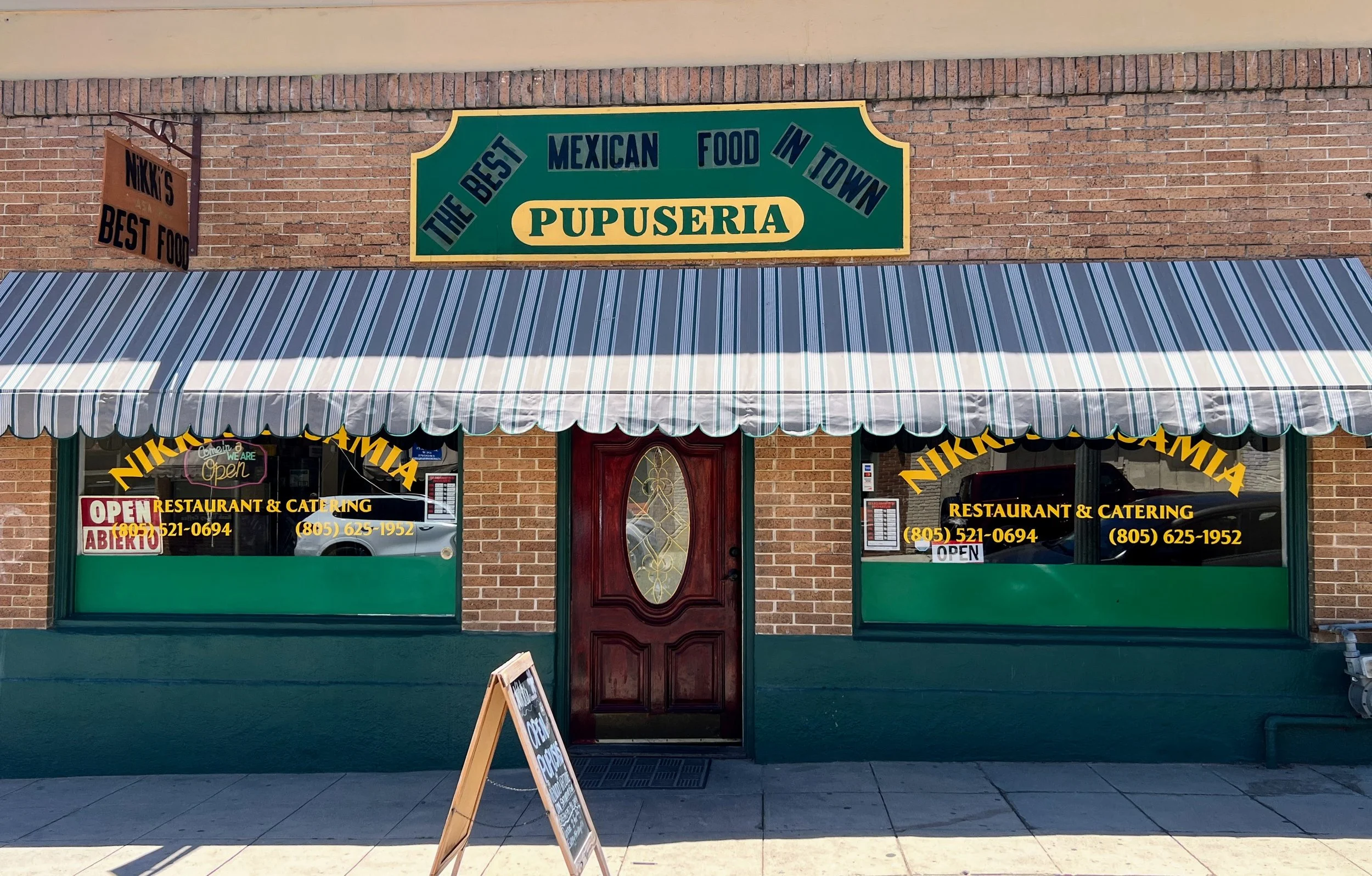 It’s the kind of place you might miss if you blink, but the downtown stretch of Piru has a quiet charm; sun-bleached signs, peaceful streets, and a handwritten blackboard outside a little restaurant called Nikki’s Casamia Restaurant & Catering that reads “Open” and “Pupusas.” We park without hesitation, go inside, and place our order at the counter: two pupusas and one huge burrito.