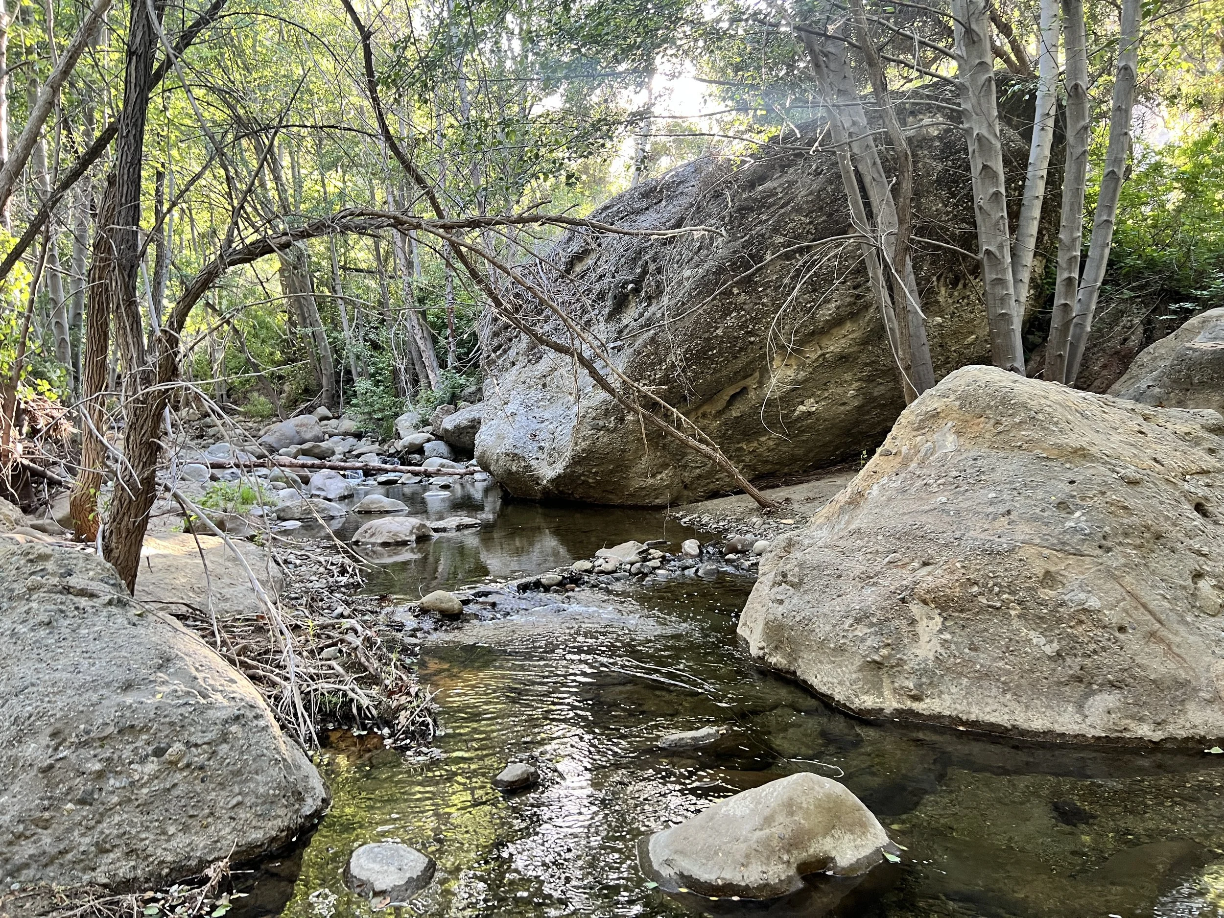 The guidebook says if the trail is difficult to find, it may be easier to just walk through the creek. Nothing about walking through the creek is easy. The difficulty is deceptive. Each step is cautious and uncertain. Sometimes the water is clear enough to see where I’m going; other times, it’s murky and thick. A few steps feel smooth and steady, then without warning, my foot sinks into thick underwater mud, like quicksand. As I try to lift it, the suction grips harder, pulling back with every effort. It takes all my strength to yank it free. God damn, this is slow. And of course, we’re traveling upstream, against the grain. Naturally.