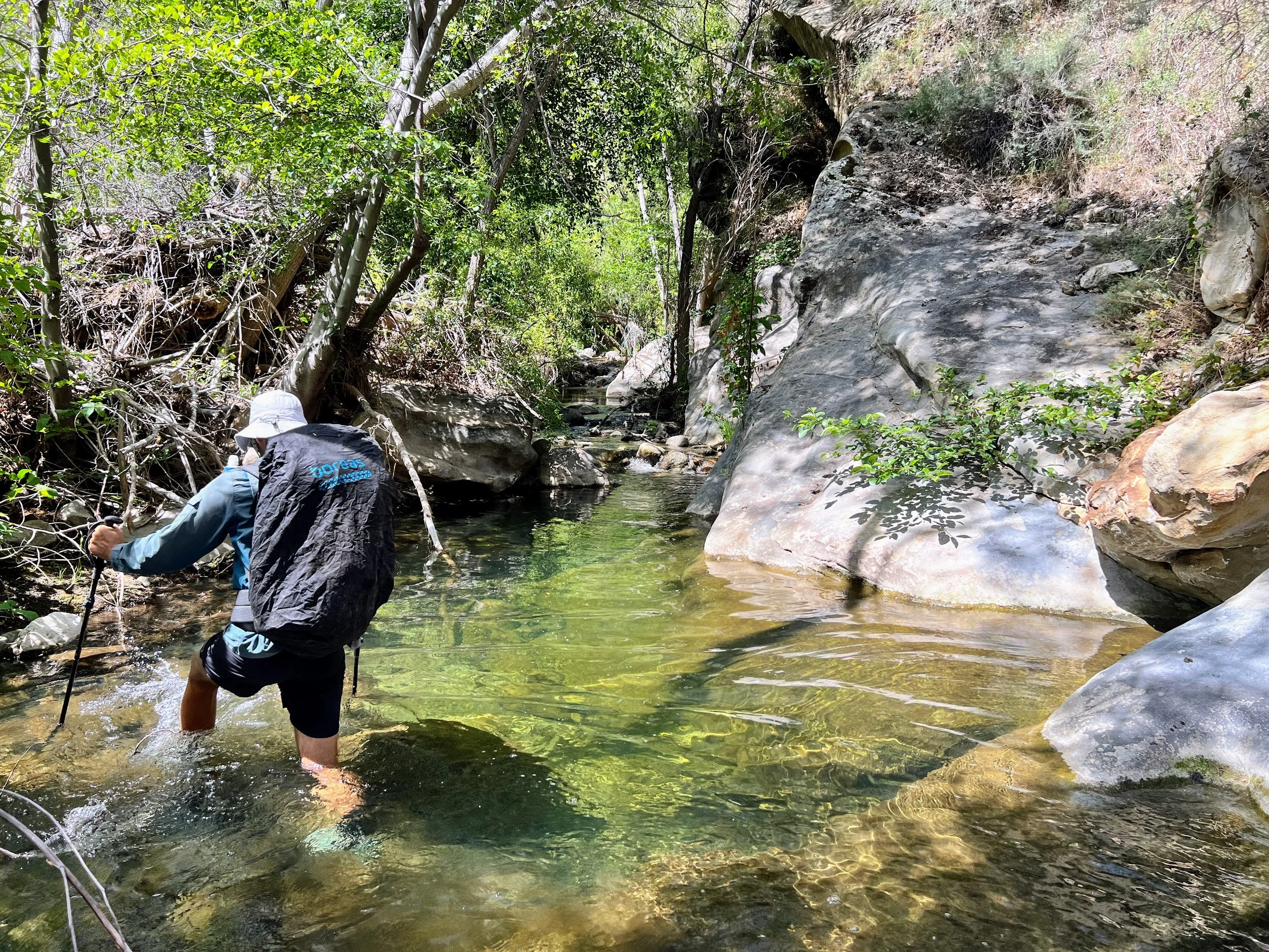 We try to follow any semblance of a trail, but it’s a fruitless effort. We spend a lot of time skirting thick patches of poison oak. More often than not, we end up slogging through the creek just to keep moving and make navigation easier. The only upside is hoping the water rinses off any poison oak oils as we go, fingers crossed.