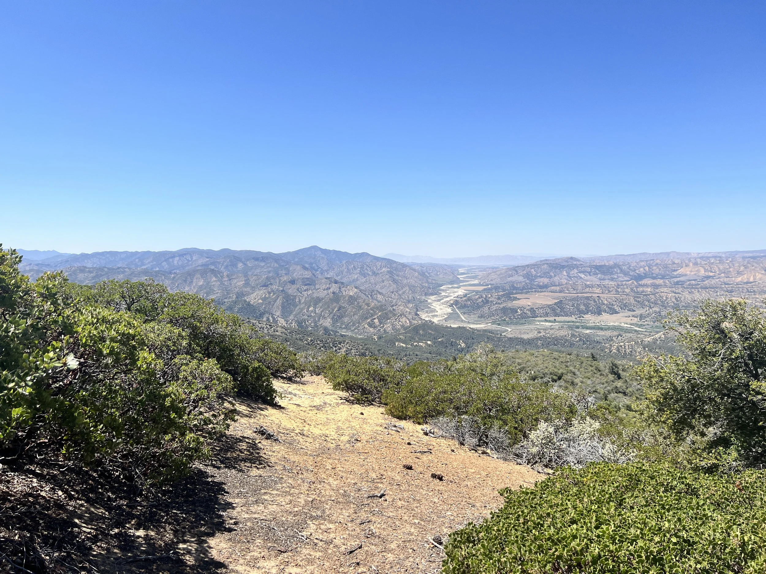 At the end of Reyes Peak Trail we reach Pine Mountain Ridge Road, a real dirt road. Now this is exciting. It’s like someone took three or four well-maintained single tracks and smooshed them into one gloriously wide path. I’ve never loved road walking more than I do on the Condor Trail.