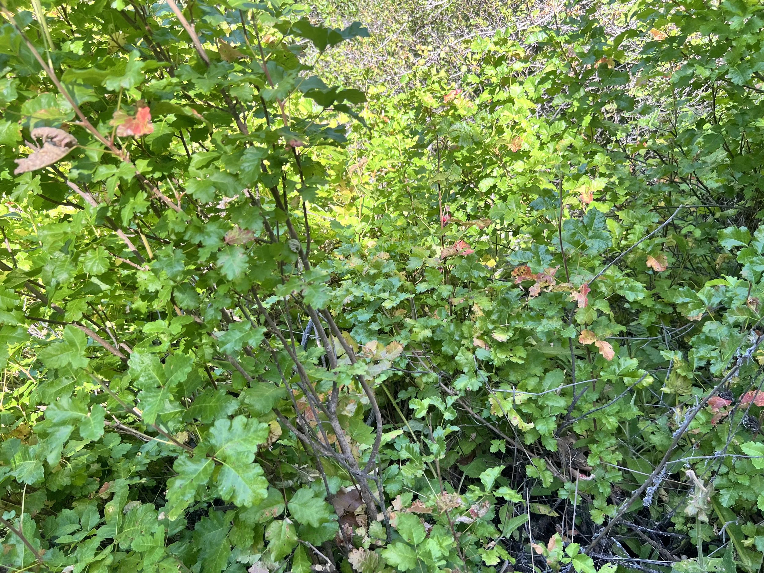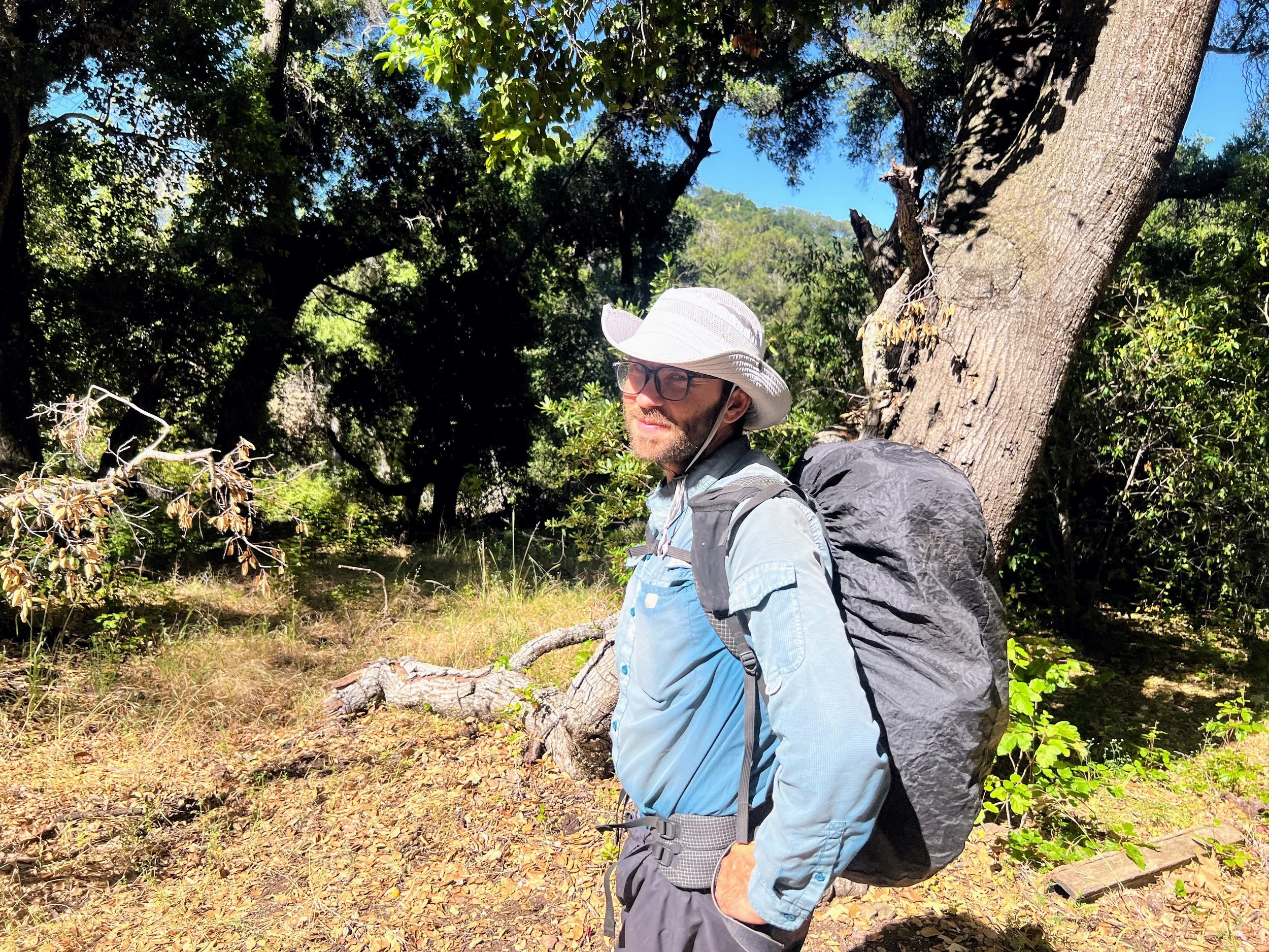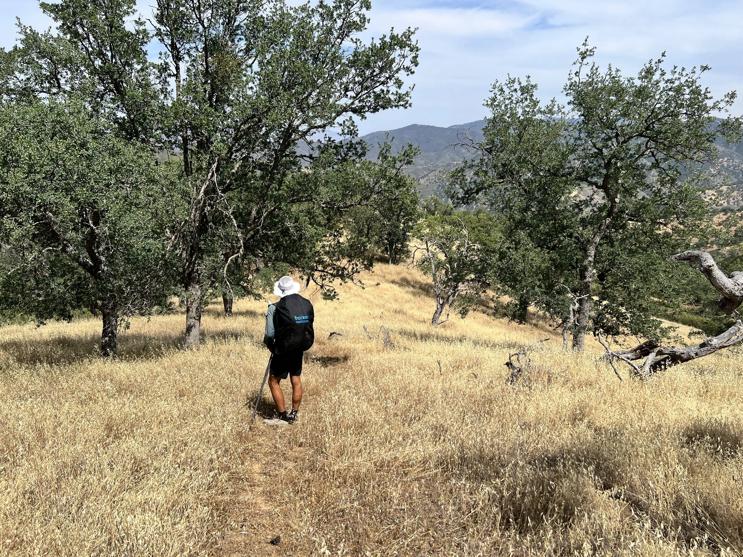 I’m irritated. The sun is still out, we have more hiking to do, and I don’t want to do this anymore. No matter how careful I am, poison oak brushes me. Cosmo suggested aiming for Buckeye Camp, which seems reasonable on the map, but moving through these oak-choked sections makes the distance feel impossible. I’m tired, thirsty, impatient, and frustrated.