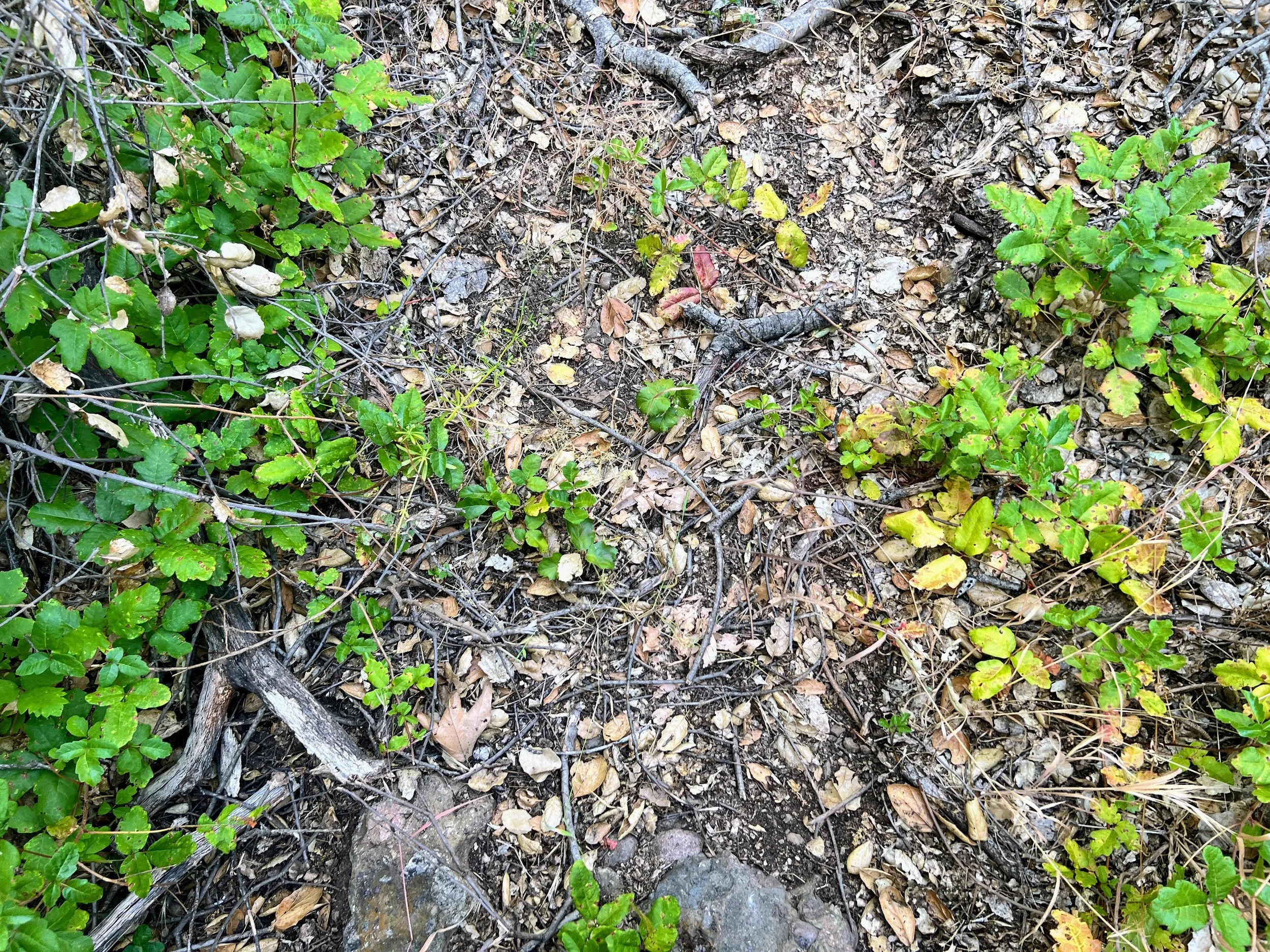 Imagine hiking in ninety-degree heat, the sun blazing, your legs wrapped in trash bags. Sweat pools against my skin, itchy and uncomfortable, but necessary. There’s no avoiding the oak completely; better that it clings to fabric than to me.