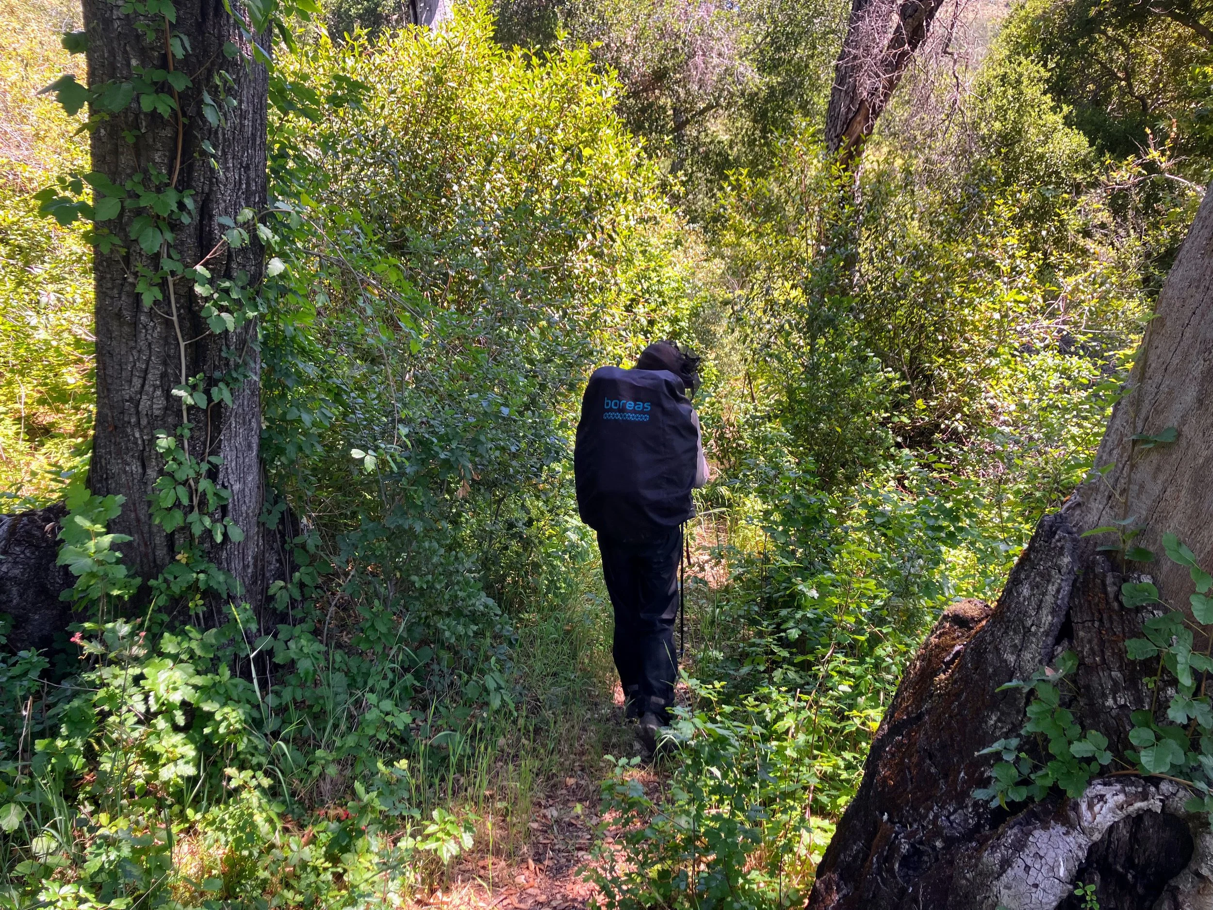By late afternoon, the heat presses down, heavy and relentless. A light breeze feels good against my skin, but when poison oak reclaims the path, I’m forced into my rain pants, thick, suffocating, plastic-feeling layers.