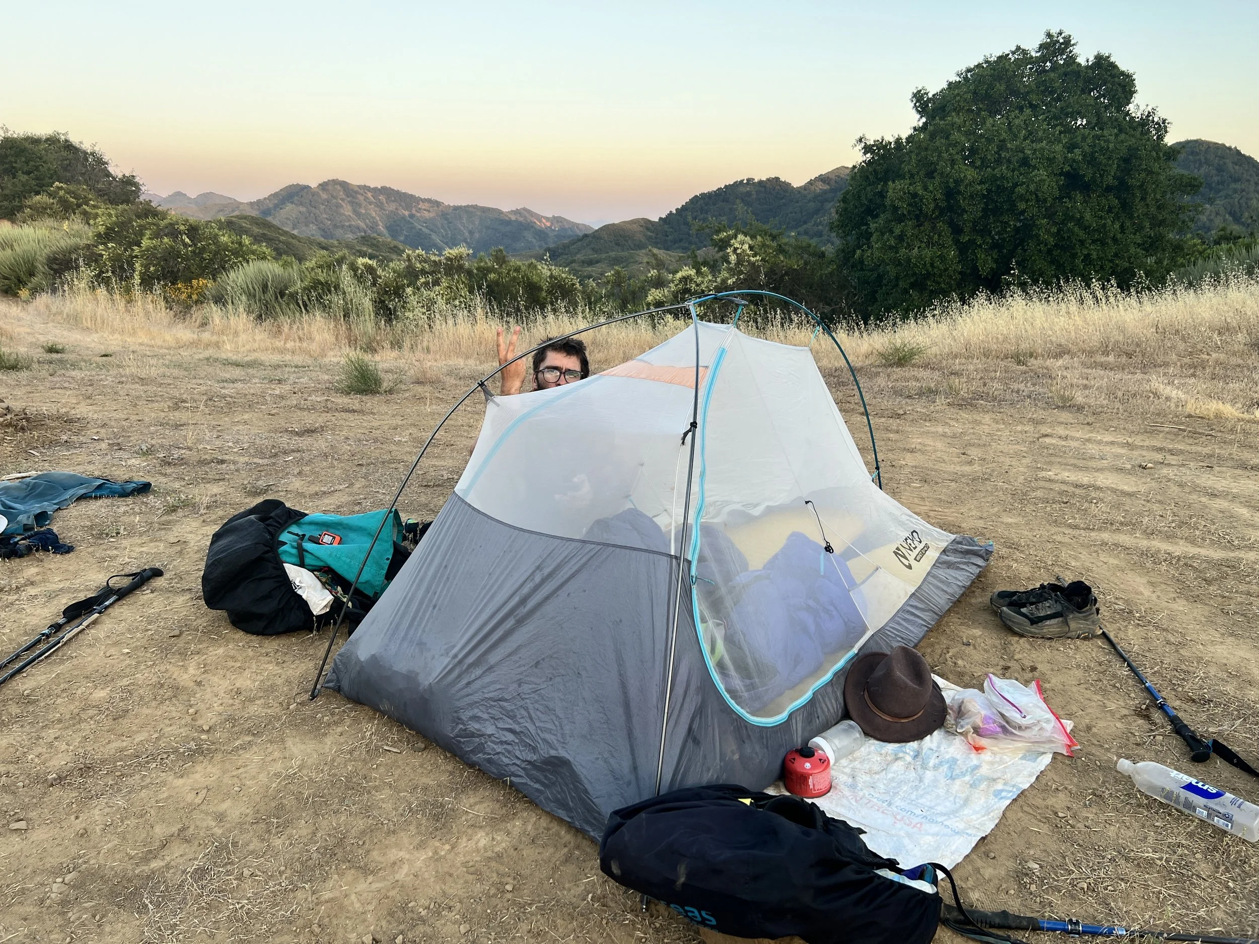 It’s a huge morale boost, not just for the food, but for the company. No one else is thru-hiking the Condor Trail, most people don’t even know it exists, and true PCT-style trail magic like this is unheard of. Spacecase drove hours just to meet us, and after weeks on the trail, having a friend show up like this lifts everything. It’s a rare, perfect treat.