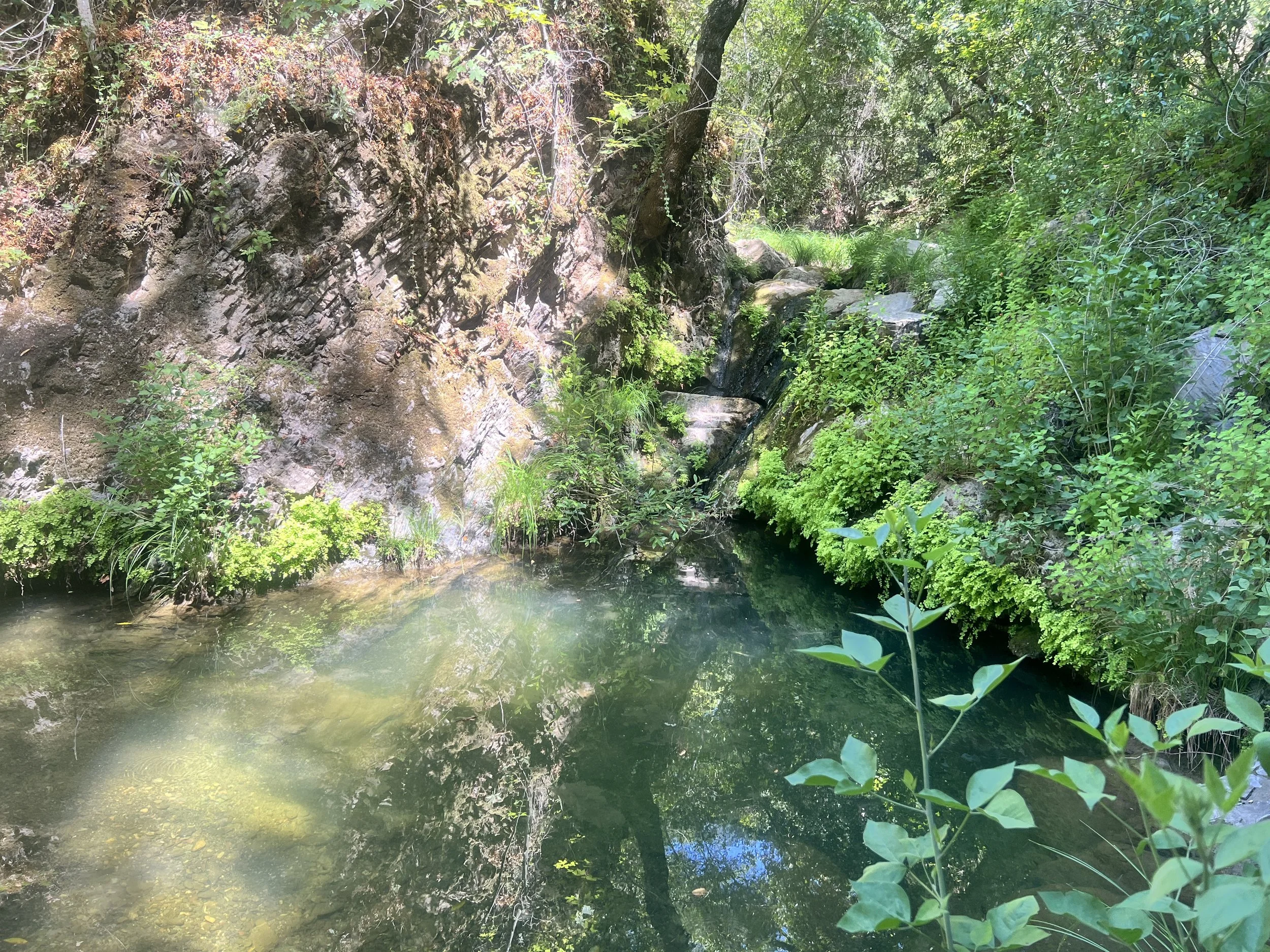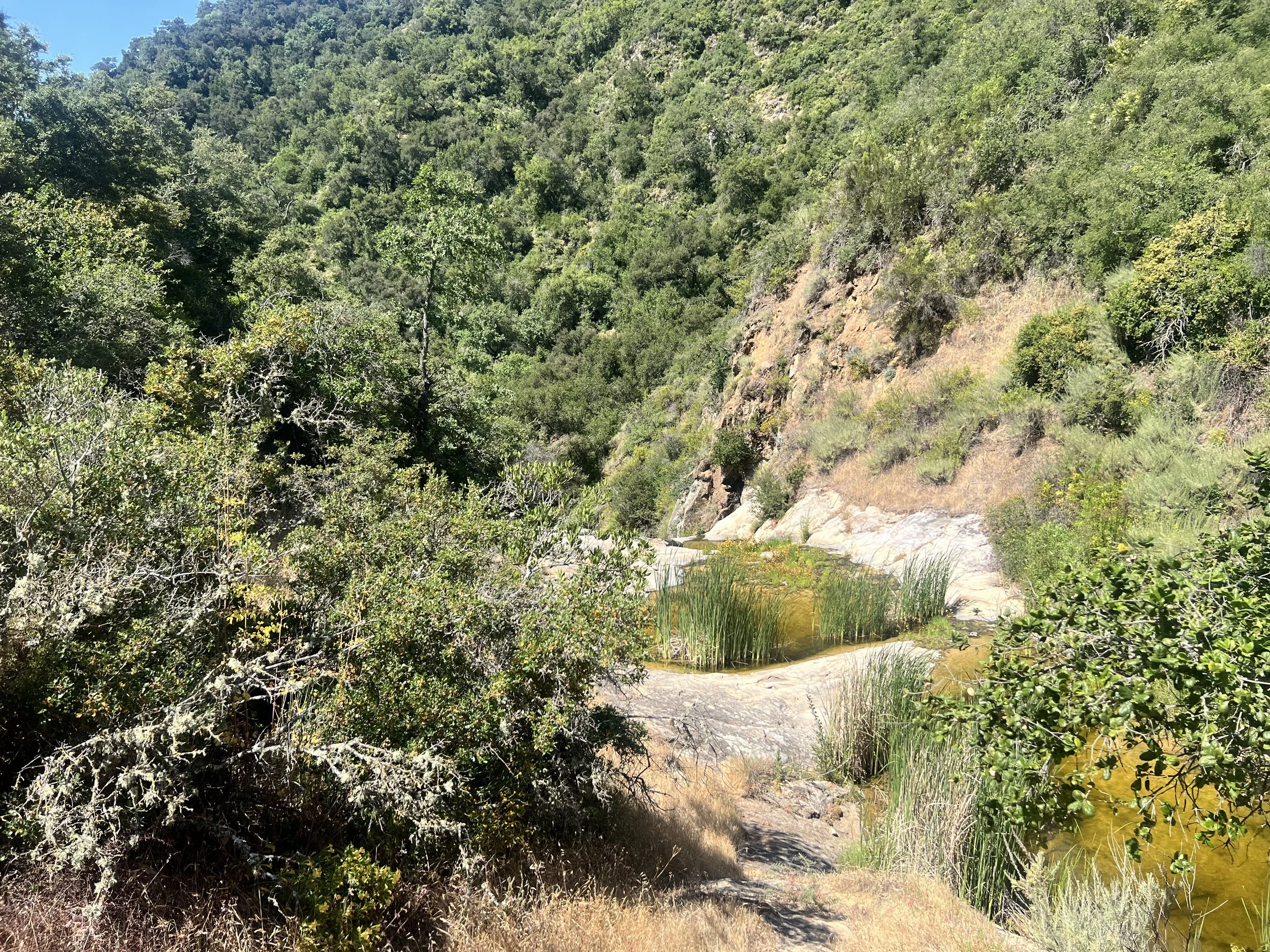 The canyon is lush: ferns and grasses at our feet, sycamore and oak spreading shade overhead, swimming holes tucked into the rock. It’s beautiful, a cool refuge from the heat, but I can’t relax. The steep, uneven terrain and slick rock keep me on edge, and the farther we descend, the more the trail is laced with poison oak. At this point it feels less like a plant and more like a presence, lurking in the undergrowth, patient and waiting to punish the unwary wanderer.