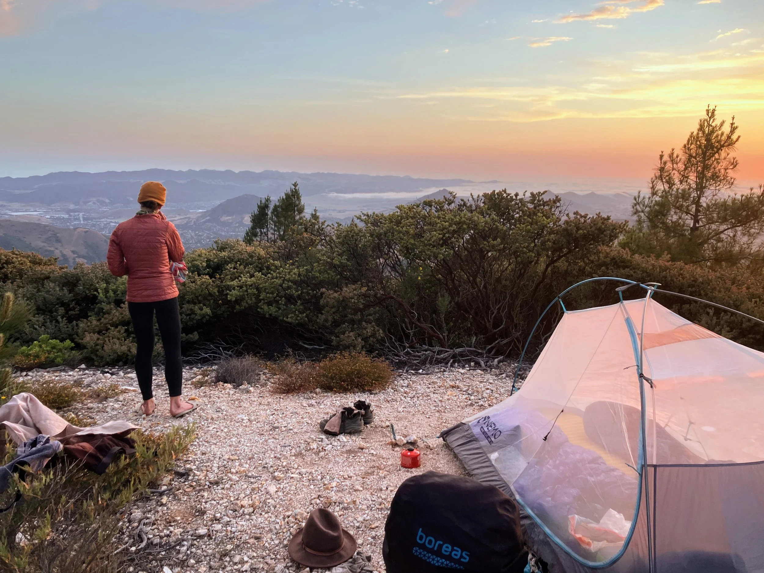 In daylight, the camp is just as overgrown with poison oak as I pictured in my nightmare the night before. We sleep in after a late night and don’t rush to start hiking. Time in the tent has become one of the best parts of the day, so I want to linger.