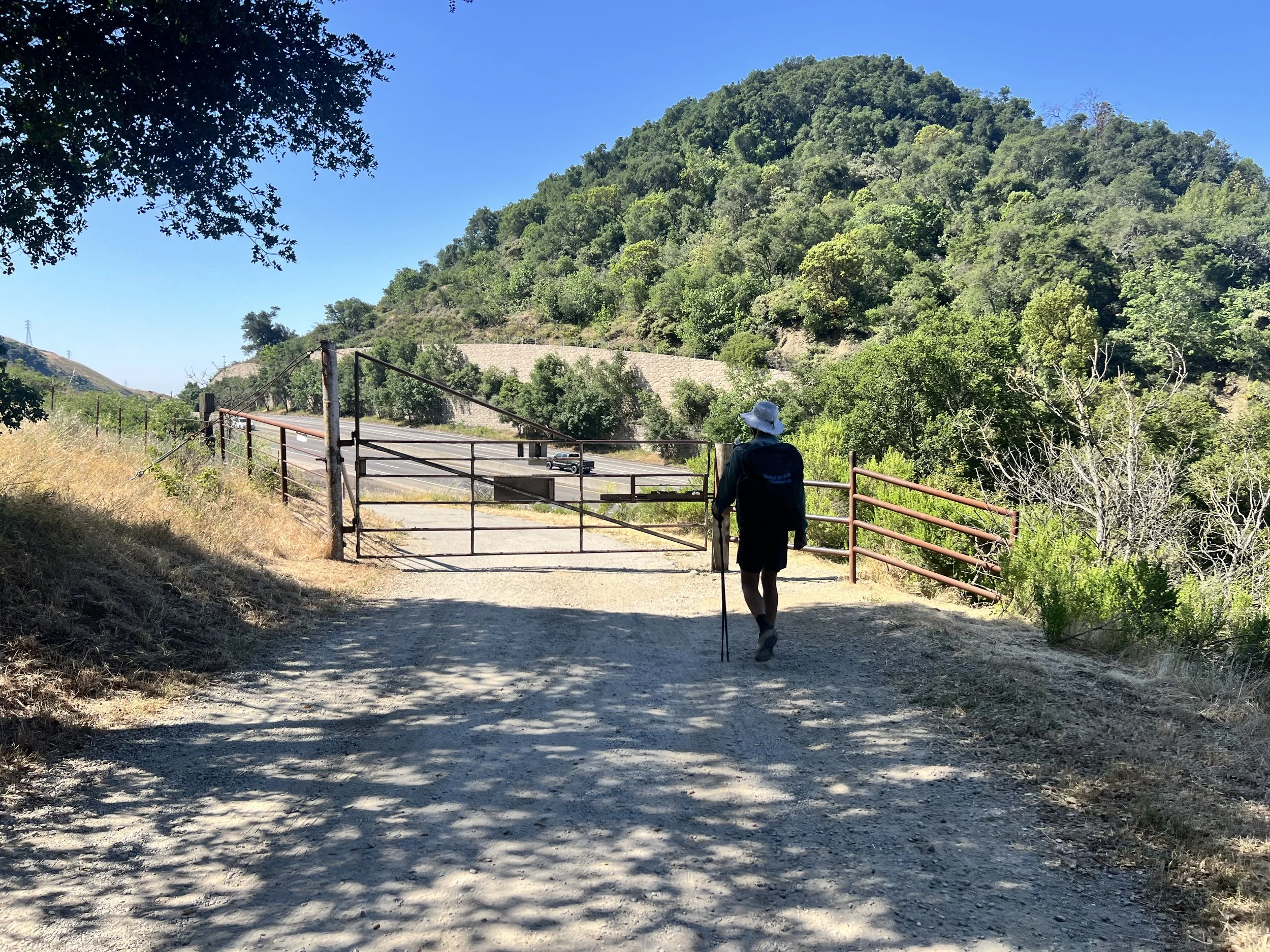 It’s hot and we’re moving slow. The road is mostly shadeless, with only the occasional oak or sycamore to duck under. I start to notice a poison oak rash spreading across my leg and hip. When I can, I scrub with water, alcohol, and Technu.
